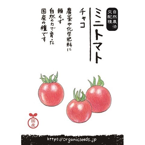 国産/自然農法種子(交配種)「トマト妙紅」「ナス黒小町」「キュウリ バテシラズ3号」「ミニトマトチャコ」