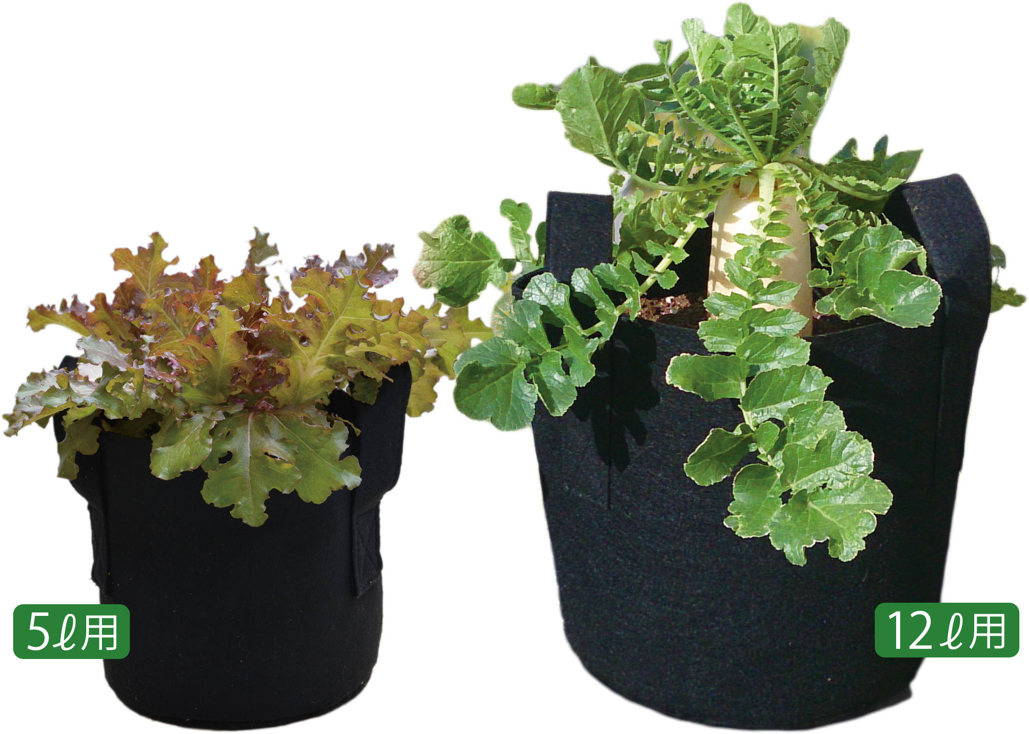 12リットルタイプは直径24cm×深さ25cmあり、ダイコン、ニンジンからヒマワリなど、高さ(深さ)のある作物の栽培も可能です。