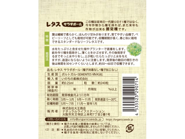 有機認証を得た土壌から育成したレタスサラダボールより採取した種です。